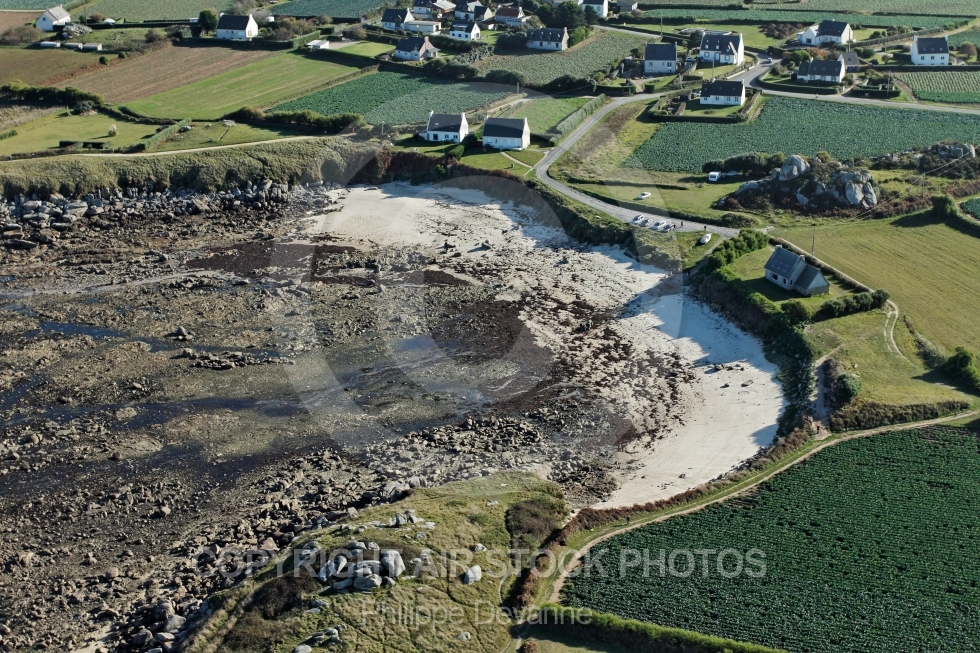 Vue aérienne du littoral de Plouescat, Pors Megen, Le Finistere vu du ciel 29, région Bretagne, arrondissement de Morlaix, Communauté de communes du Pays Léonard, France , Europe