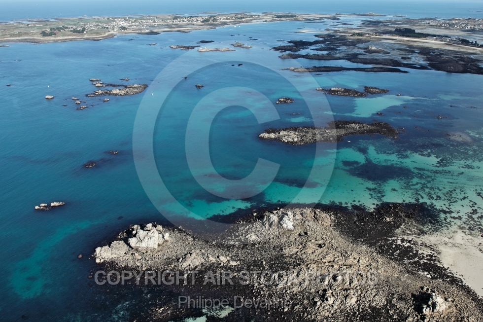Vue aérienne du littoral de Santec , côtes du Finistère 29250, région Bretagne, arrondissement de Morlaix, Communauté de communes du Pays Léonard, France , Europe