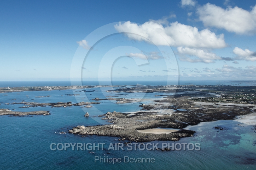 Vue aérienne du littoral de Santec , côtes du Finistère 29250, région Bretagne, arrondissement de Morlaix, Communauté de communes du Pays Léonard, France , Europe