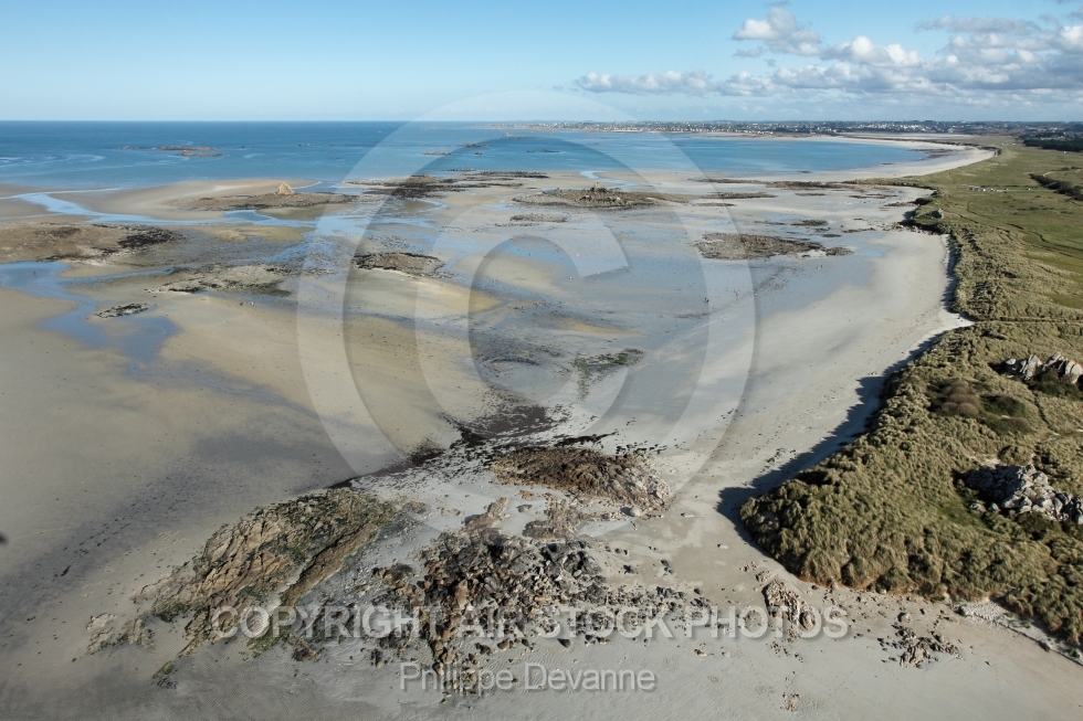 Description: Vue aérienne de la plage de Keremma, situé dans dans la baie de Goulven, Finistère 29430, région Bretagne, arrondissement de Morlaix, France , Europe