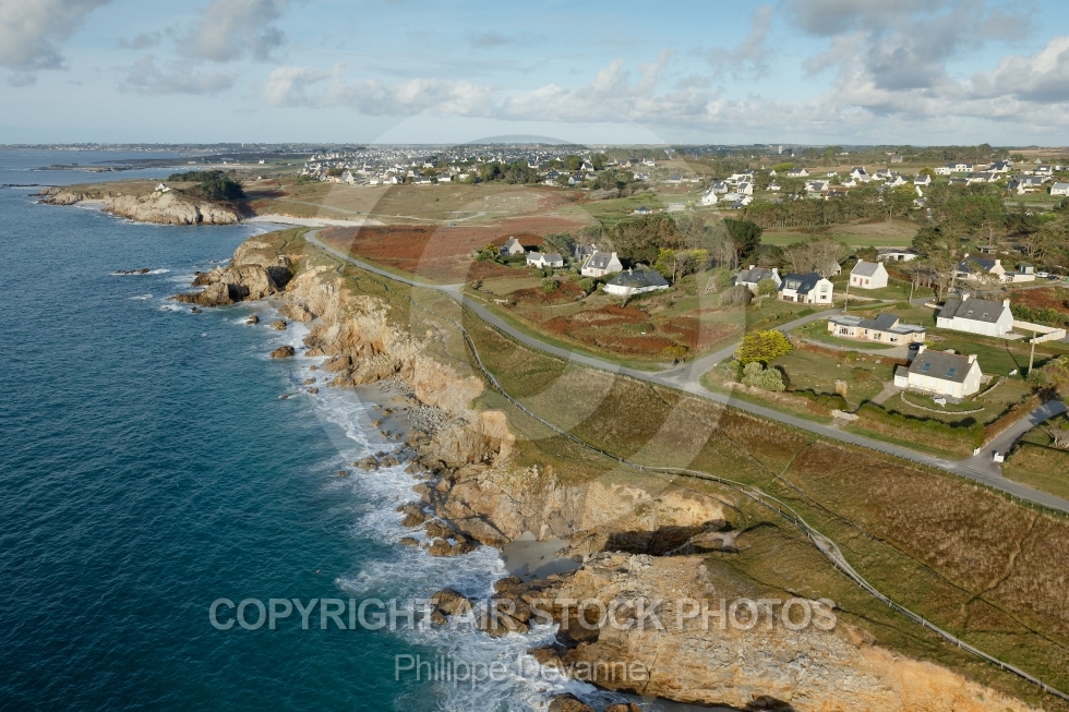 Description: Photo aérienne de la côte de Ruscumunoc et Trezien sur la commune de Plouarzel 29810 Plouarzhel en pays d Iroise, canton de St-Renan , Département du Finistère 29, Région Bretagne, France - Prise de vue aérienne en paramoteur du 20 octobre 2014