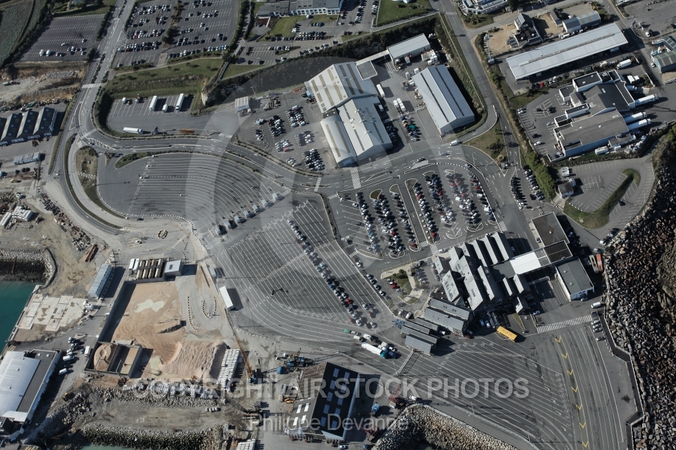 Vue aérienne du port de Roscoff 29680 , transport maritime ferries assurant la liaison entre Roscoff et Cork en Irlande - Roscoff, côtes du Finistère , région Bretagne, arrondissement de Morlaix, Communauté de communes du Pays Léonard, France , Europe