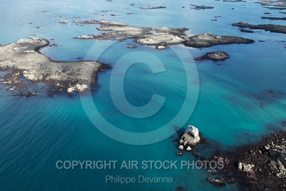 Bretagne finistere photo aérienne aérienne vue du ciel mer ocean côte vue oblique France Europe Morlaix 29 29250 Santec roche récifs bleu
