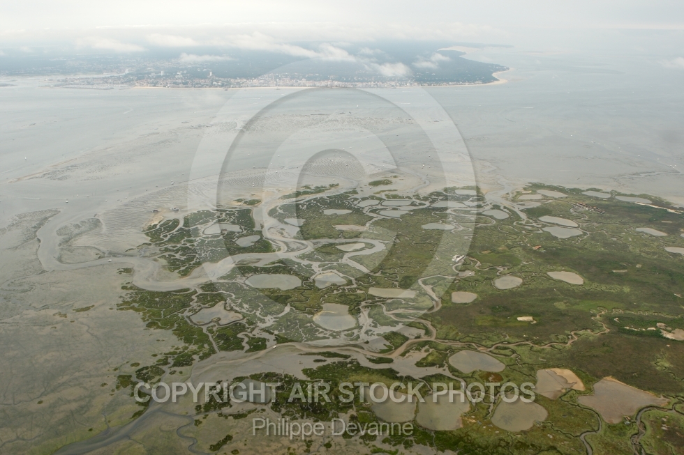vue aérienne île bassin côte mer atlantique aquitaine Gironde l'île aux oiseaux paysage eau survol 33
