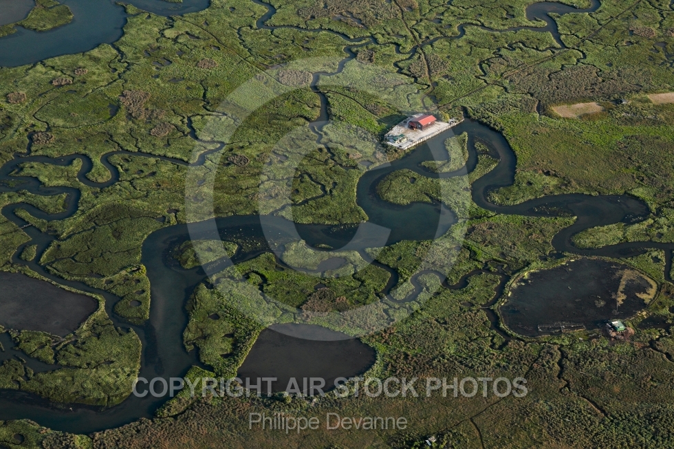 Description: Photographie aérienne de l ïle aux oiseaux, zone naturelle sensible au centre du bassin d Arcachon, sur la commune de la Teste-de-Buch 33260, département de la Gironde, région Aquitaine, France - Juillet 2015