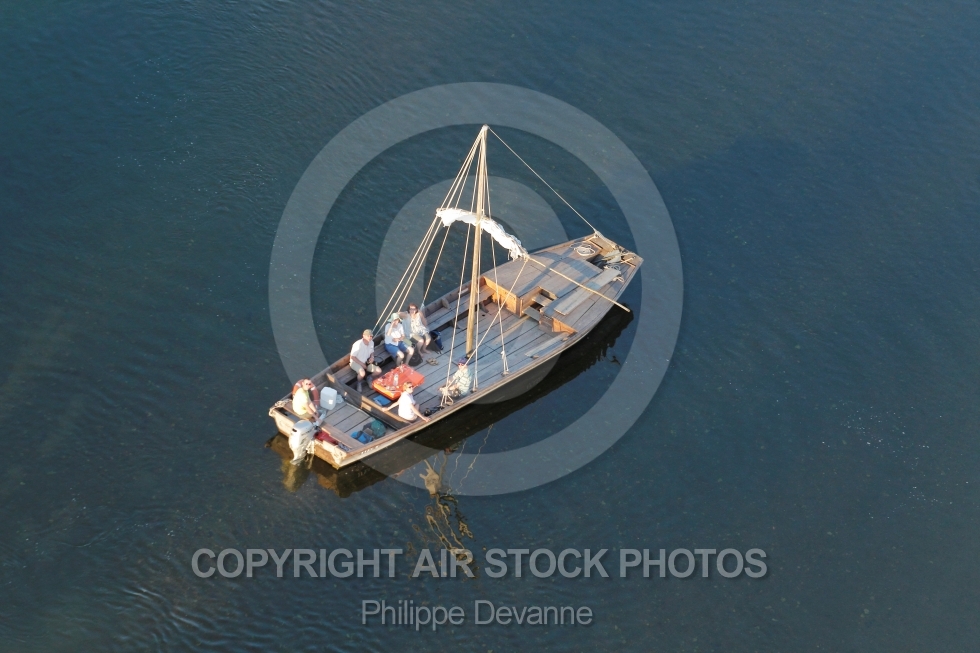 Description: Photo aérienne d une barque sur la Loire en Indre-et-Loire, 37400, région Centre, France