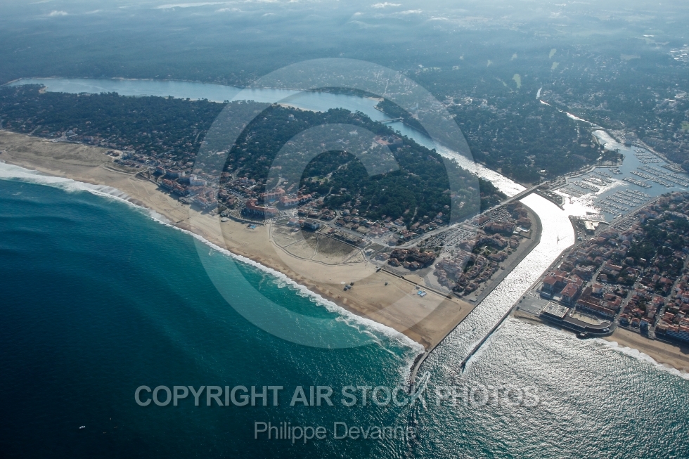 Description: photo aérienne du canal d Hossegor 40150 et de la passe du Boucarot , département des Landes 40, Région Aquitaine, Litorral du sud de la France