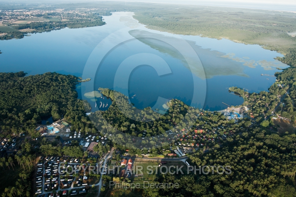 Description: photo aérienne de l étang de Soustons, vue de la route des camping à Azur 40140 , département des Landes 40, Région Aquitaine, Litorral du sud de la France