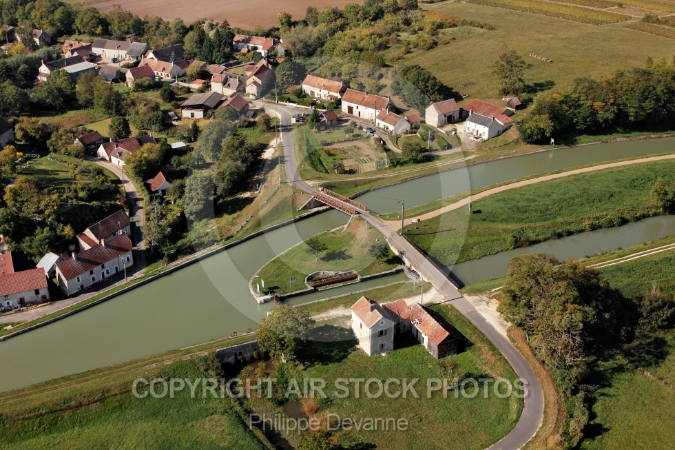 Description: Photo aérienne de l ecluse de l Etang, Beaulieu-sur-Loire 45 , canal latéral à la Loire au niveau de Beaulieu-sur-Loire 45630 département du Loiret région Centre France
