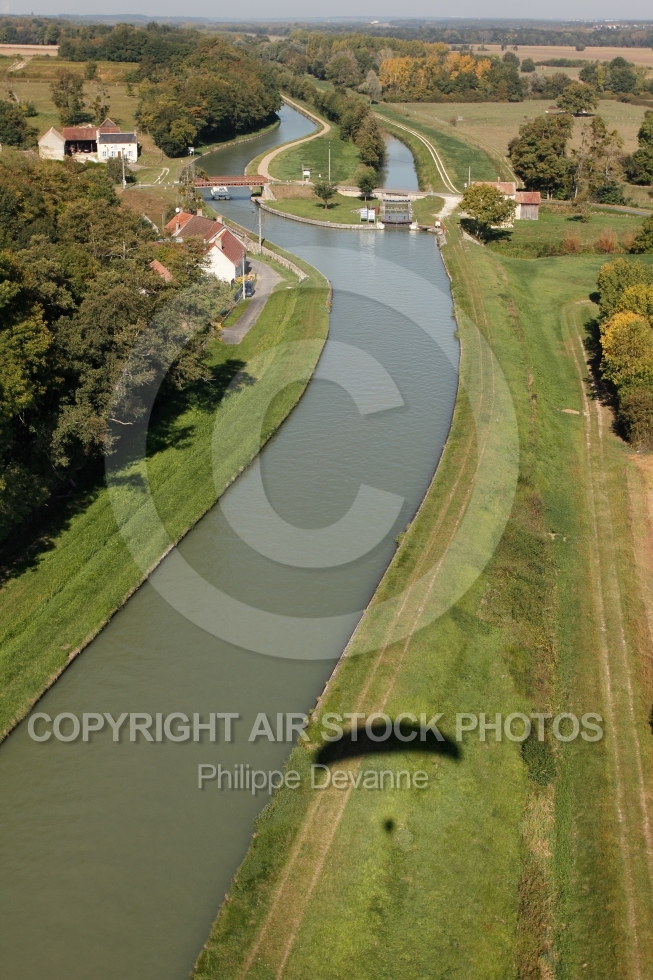 Description: Photo aérienne de l ecluse de l Etang, Beaulieu-sur-Loire 45 , canal latéral à la Loire au niveau de Beaulieu-sur-Loire 45630 département du Loiret région Centre France
