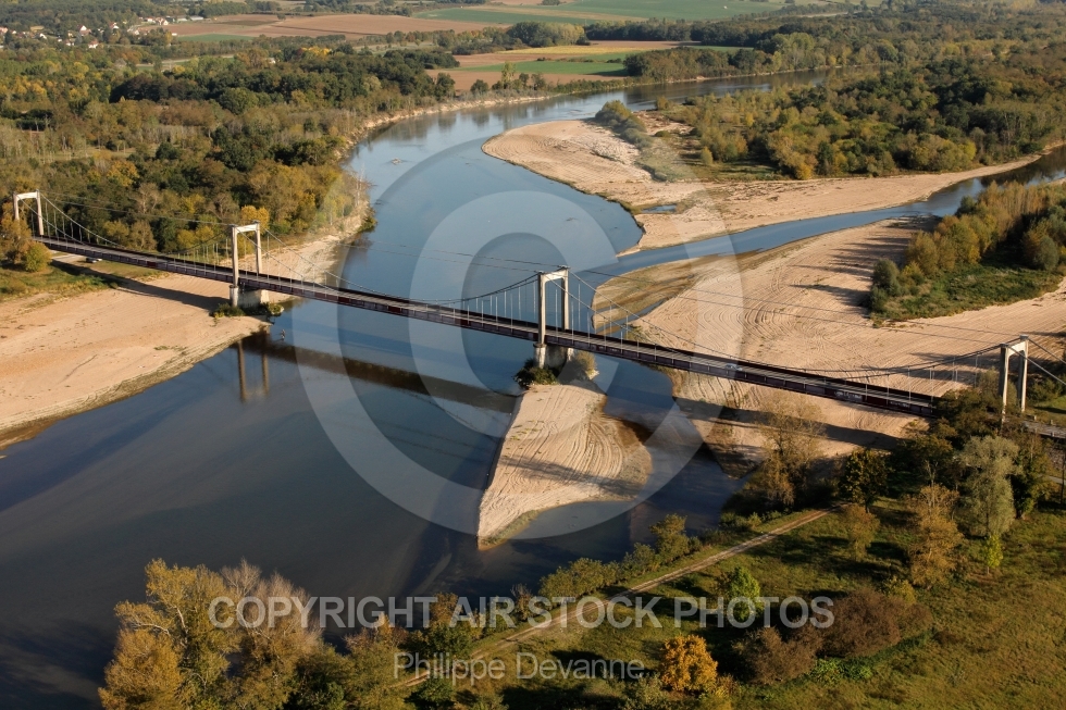 Photo aérienne du pont suspendu sur la Loire à Bonny-sur-Loire 45420, Loiret, Centre, France. Route de Beaulieu-sur-Loire