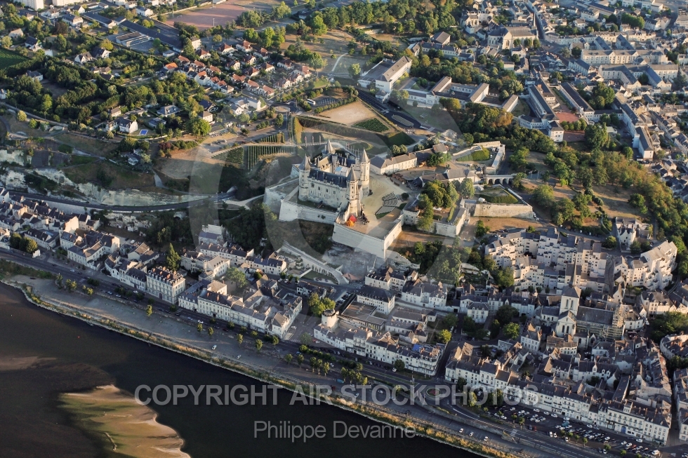 Photo aérienne Saumur château Loire château de la Loire paysage 49400 Maine-et-Loire Pays de la Loire vue du ciel vu d'en haut rivière fleuve ville France