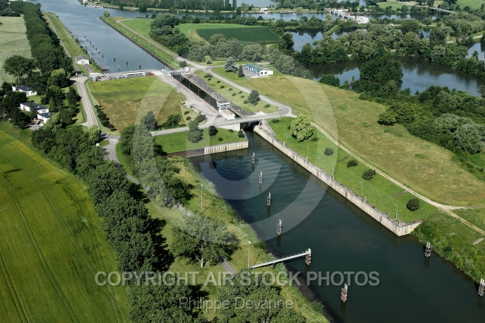 ecluse fleuve Kœnigsmacker photo aerienne aérien moselle 57 lorraine Thionville paysage est vue du ciel vue d'en haut vue d'avion vue oblique photos aériennes aérienne ULM paramoteur France 57970