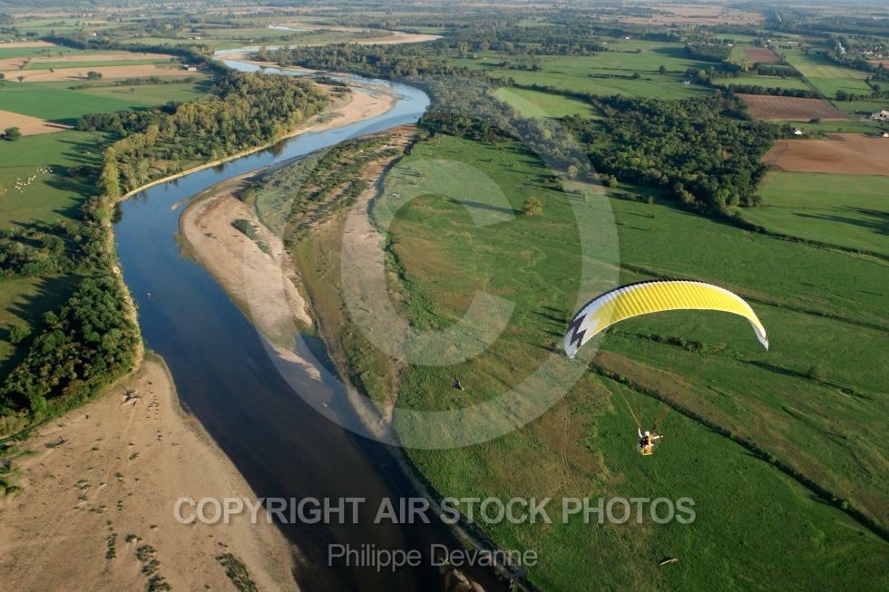 | La Loire vue du ciel en ULM paramoteur | Qualité : Fichier JPG Original Dimensions : 3888(px) x 2592(px) Megapixels : 10,08 Taille du fichier : 8,12(mb) Prix : €45 ( TTC, TVA incluse 20.0000% - TVA 20 )Prix: €45