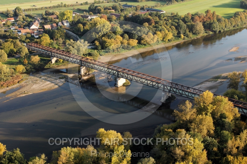 Vue aérienne du pont de chemin de fer désafecté à Port Aubry , Cosne-Cours-sur-Loire 58200, département de la Nièvre, région Bourgogne, France