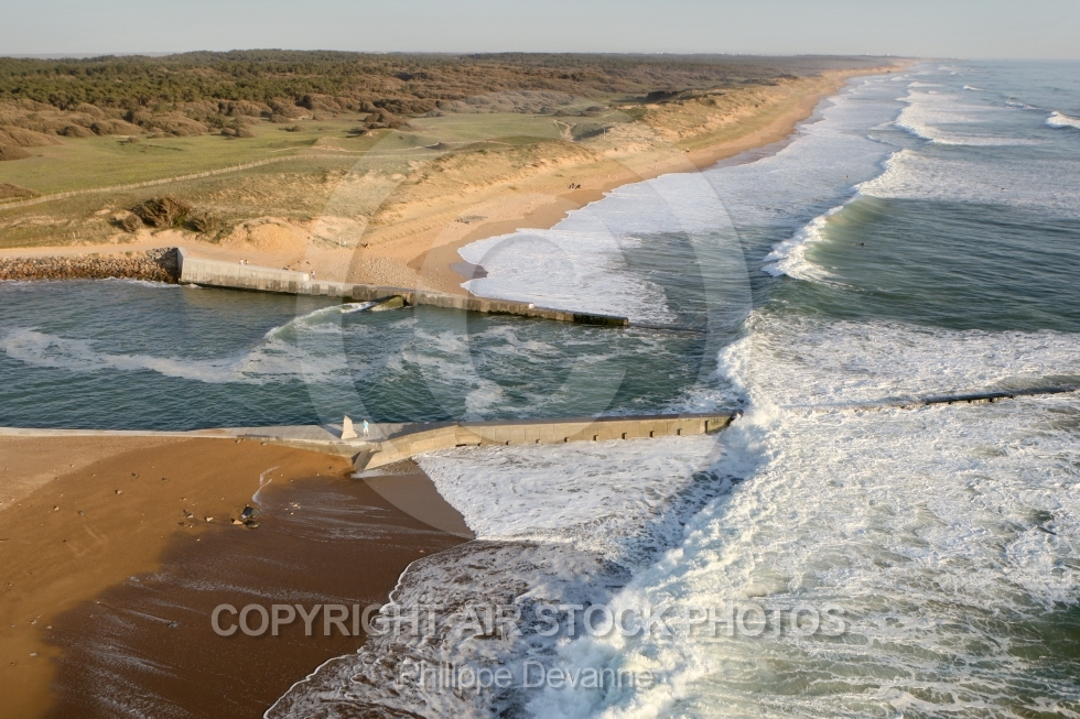 Brétignolles-sur-Mer Olonne-sur-Mer barrage havre Bre Vendée vue du ciel côte littoral Pays-de-la-Loire survol 85 85470 vue aérienne aérien photo photographie mer Atlantique océan plage France Europe