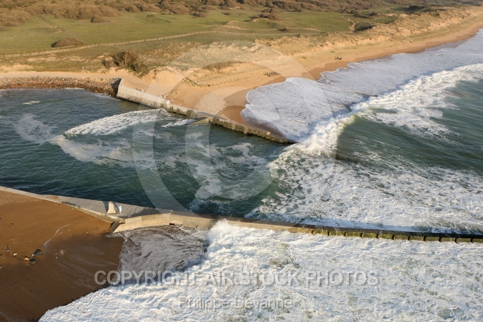 Brétignolles-sur-Mer Olonne-sur-Mer barrage havre Bre Vendée vue du ciel côte littoral Pays-de-la-Loire survol 85 85470 vue aérienne aérien photo photographie mer Atlantique océan plage France Europe