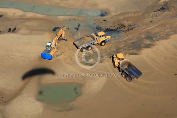 Camions et pelleteuses sur les dune d Arçais, Vendée 85