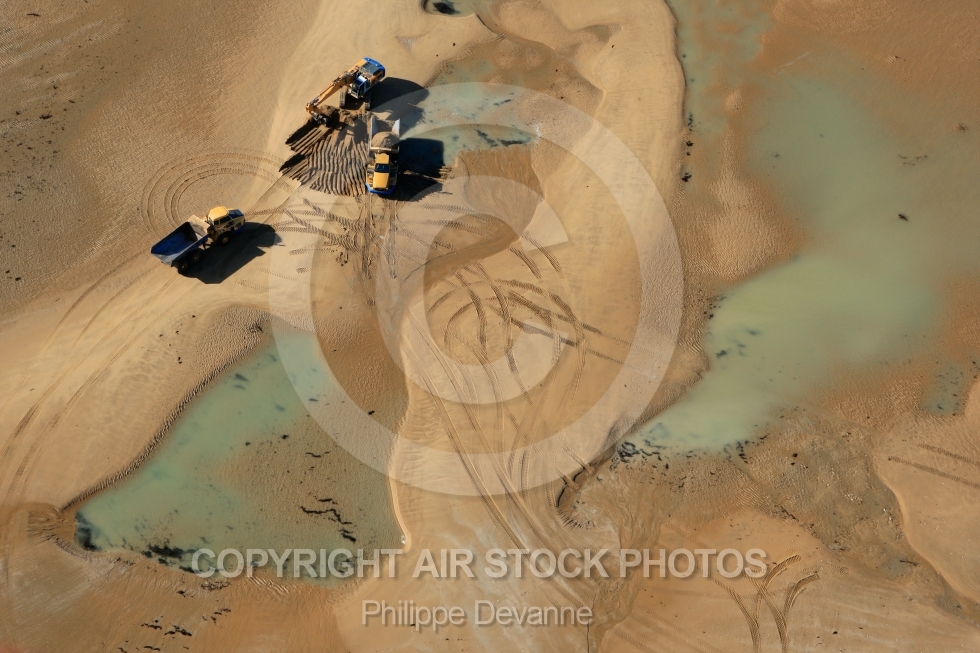 Vue aérienne - reconstruction des dunes de la pointe d Arçay, pointe de l aiguillon suite à la catastrophe naturelle de la tempête Xynthia du 27 et 28 fevrier 2010 , Vendée 85
