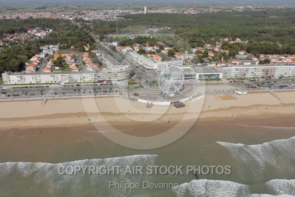 Saint-Jean-de-Monts grande roue roue manège atraction fête Vendée vue du ciel côte littoral Pays-de-la-Loire survol 85 85160 vue aérienne aérien photo photographie mer Atlantique