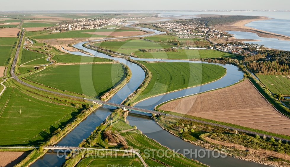 Photographie aérienne de La Faute-sur-Mer et l Aiguillon-sur-Mer 85460 , vue du Marais Poitevin en Vendée 85 en région Pays de la Loire Atlantique, France. Prise de vue du