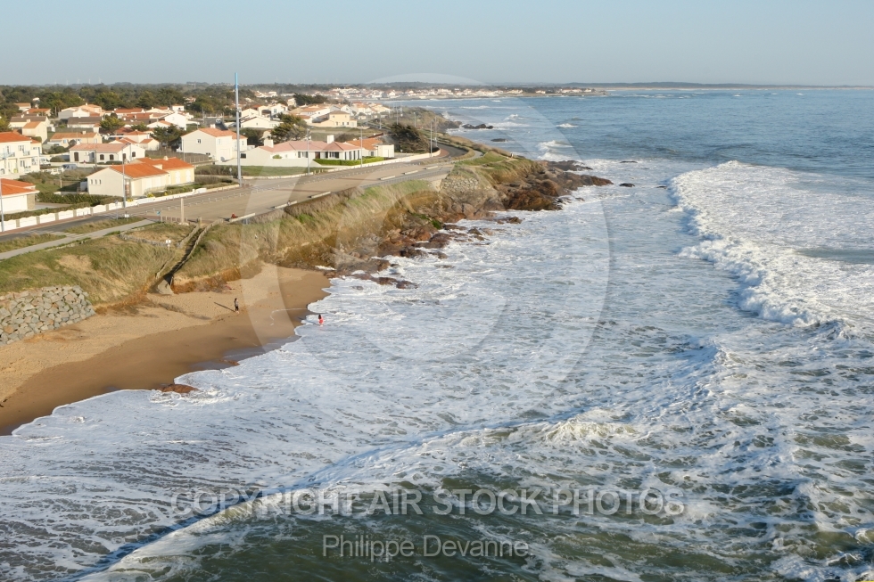 Brétignolles-sur-Mer Vendée vue du ciel houle vague spot La Sauzaie Sausaie surf mer agitée agitée haute marée marée côte littoral Pays-de-la-Loire survol 85 85470 vue aérienne aérien photo photographie mer Atlantique océan plage France Europe