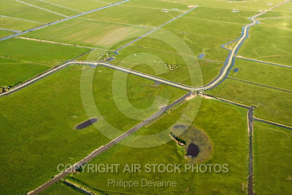 Photographie aérienne du Marais Poitevin en Vendée 85 situé sur les commune de Angles, Grues et St-Michel-en-l Herm en région Pays de la Loire Atlantique, France. Prise de vue d avril 2017