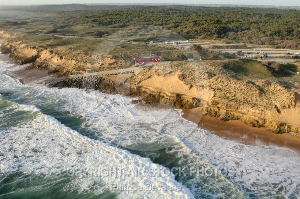 Olonne-sur-Mer Sauveterre plage Vendée vue du ciel côte littoral falaises corniche Pays-de-la-Loire survol 85 85340 vue aérienne aérien photo photographie mer Atlantique océan plage France Europe