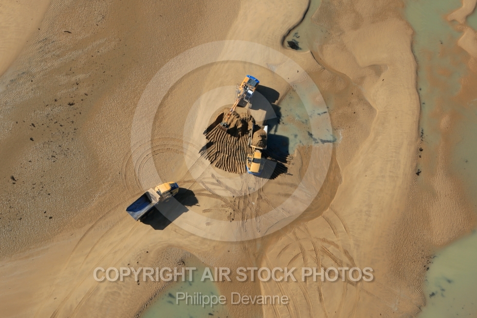 Vue aérienne - reconstruction des dunes de la pointe d Arçay, pointe de l aiguillon suite à la catastrophe naturelle de la tempête Xynthia du 27 et 28 fevrier 2010 , Vendée 85