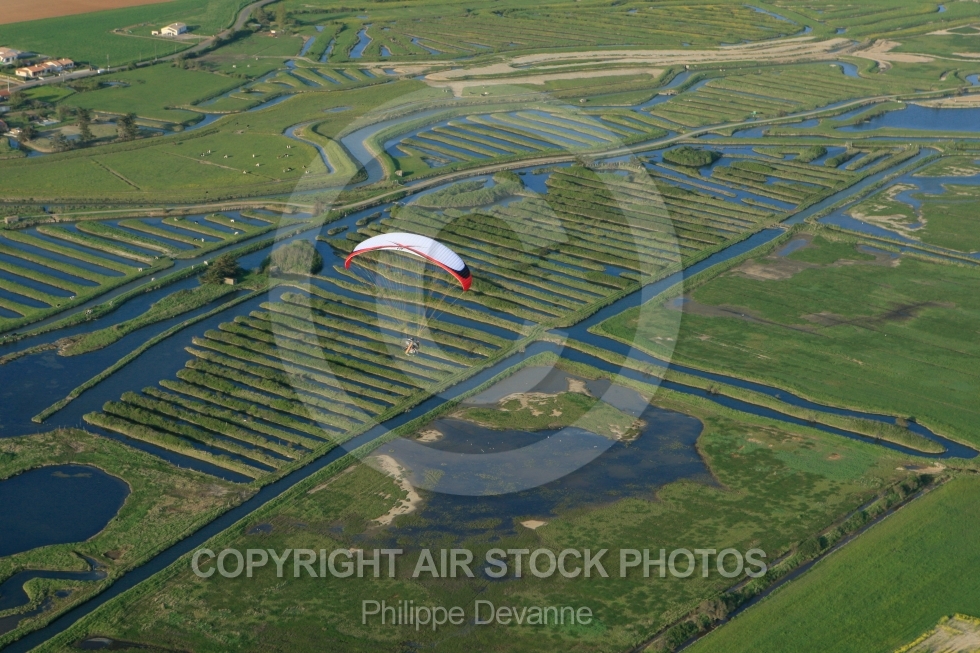 vue aerienne marais ulm paramoteur parapente bocage payrée veillon eau humide vendée poitevin jard-sur-mer côte atlantique verdure vert paysage talmont-saint-hilaire 85 vendée pays-de-loire