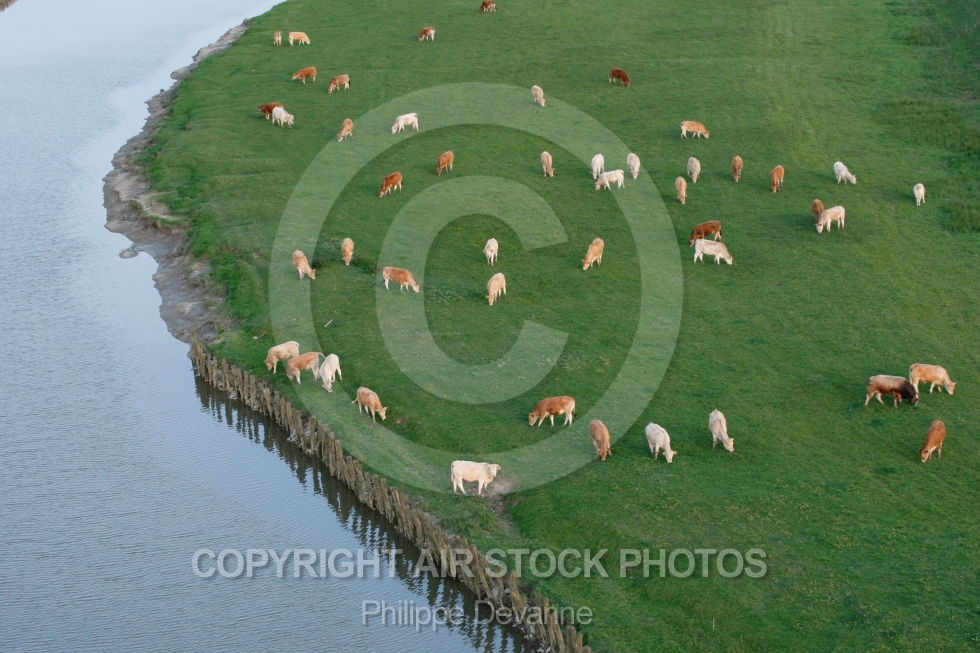 vue aerienne marais bocage élevage boeufs vaches troupeaux humide vendée poitevin jard-sur-mer côte atlantique verdure vert paysage 85 vendée pays-de-loire 85440 talmont-saint-hilaire