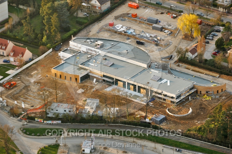 Description: Photo aérienne de la Piscine de Dourdan en construction mars 2011, 91410, Essonne, Région Ile-de-France, France