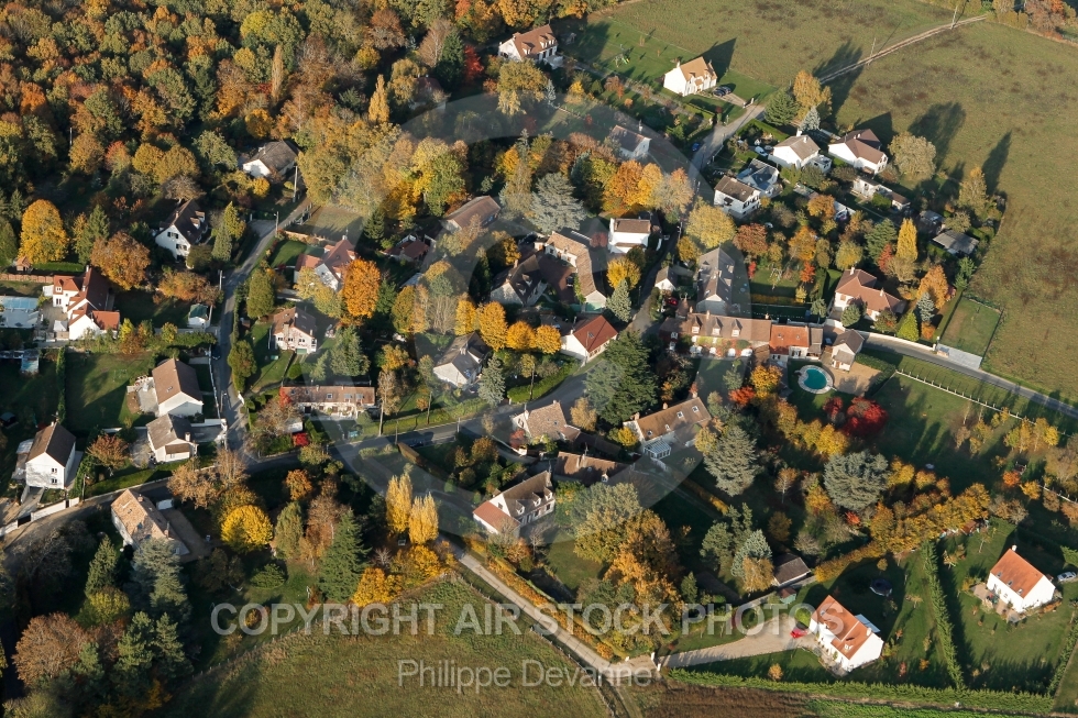 Description: Photo aérienne du hameau la Bruyère sur les communes de Roinville 91410 et Sermaise 91530 , a 43 km sud ouest de Paris et 3 km à l Est de Dourdan, commune du pays de l Hurepoix, département de l Essonne, région Île-de-France.