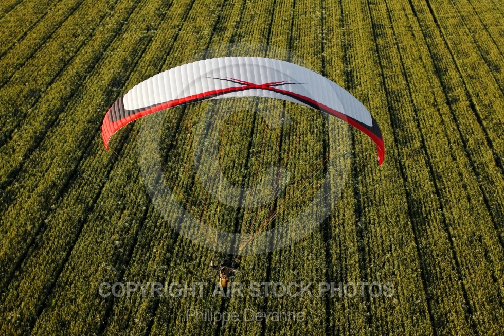 Description: Voile paramoteur photographiée àpartir d un autre ULM en région d Ile-de-France
