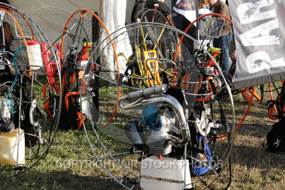 Description: Paramoteurs vus du sol au 7 eme mondial du paramoteur , le 22,23 et 24 juin 201 à57910 Basse-Ham, département de la Moselle, région Lorraine, France
