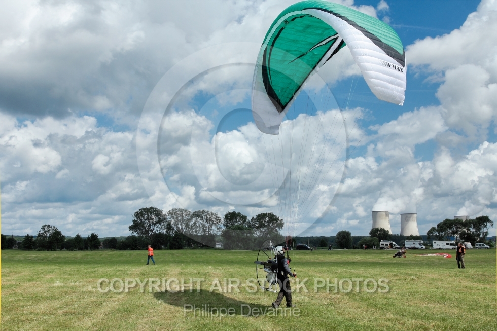 Description: Paramoteurs vus du sol au 7 eme mondial du paramoteur , le 22,23 et 24 juin 201 à57910 Basse-Ham, département de la Moselle, région Lorraine, France