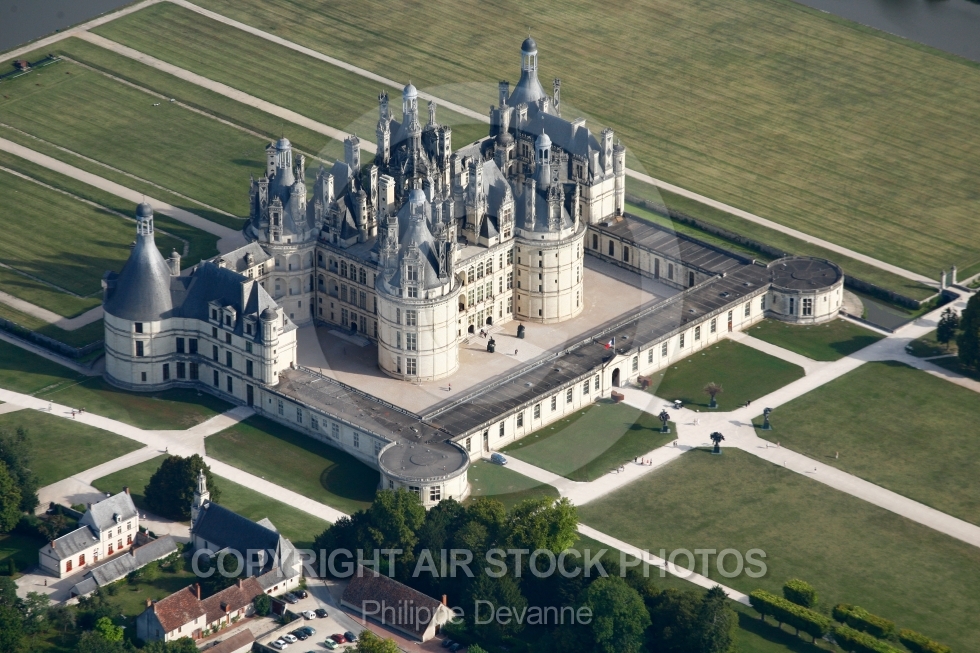 Description: Château de Chambord vue du ciel à 1500 pieds en ULM - Châteaux de la loire, Loir-et-cher, région centre France