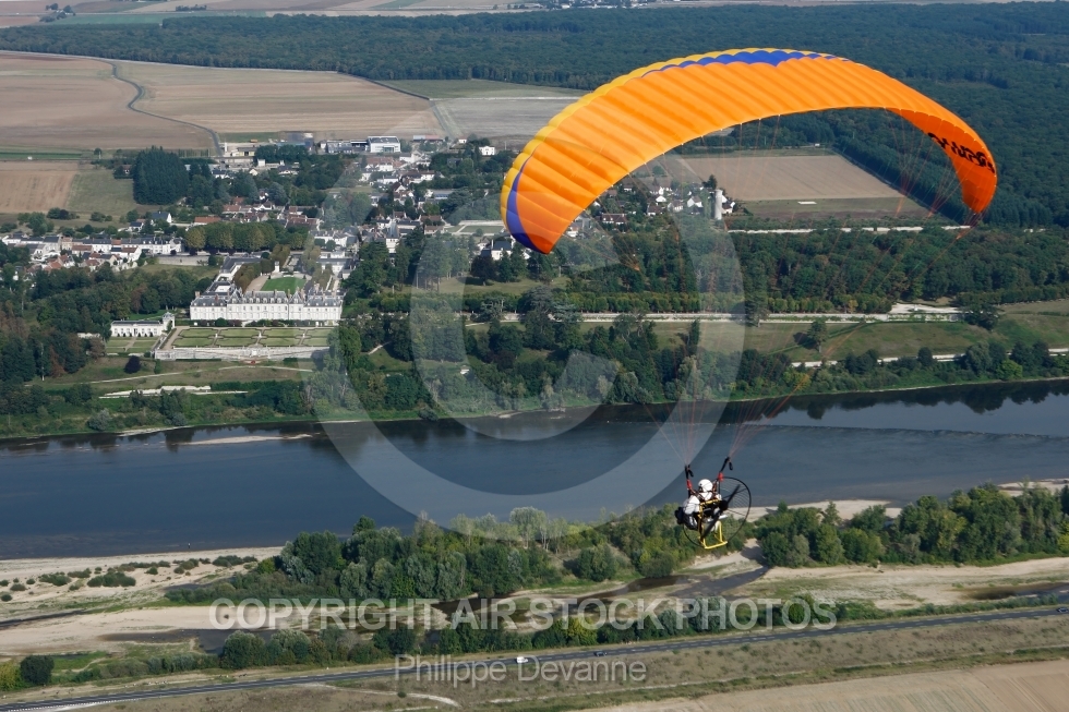 Description: survol du Chateau de Ménars et la loire en ULM paramoteur. Ménars 41500 , Loir-et-Cher, Région Centre