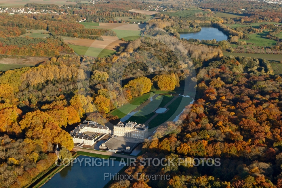 Description: Photo aérienne du château du marais en automne 2015, vallée de la Remarde, 91530 Le Val-Saint-Germain, région ïle-de-France