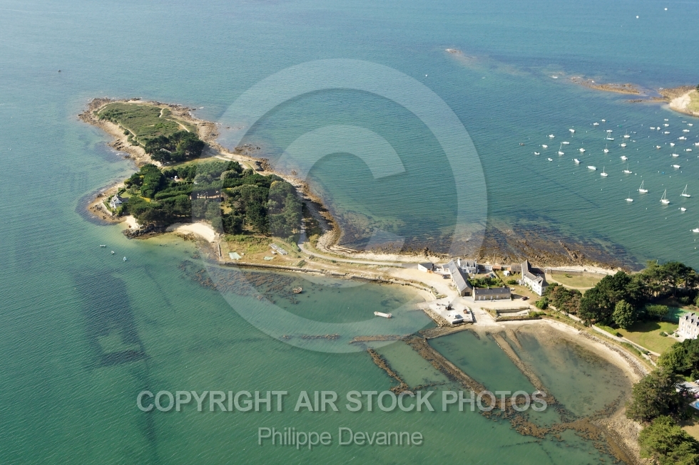 Description: vue aerienne de Pointe de Men er Bellec, ou la presqu île de l anse de Tréhen Ar Vour, St philibert, Golfe du Morbihan 56 - Bretagne et ses îles, France, Europe