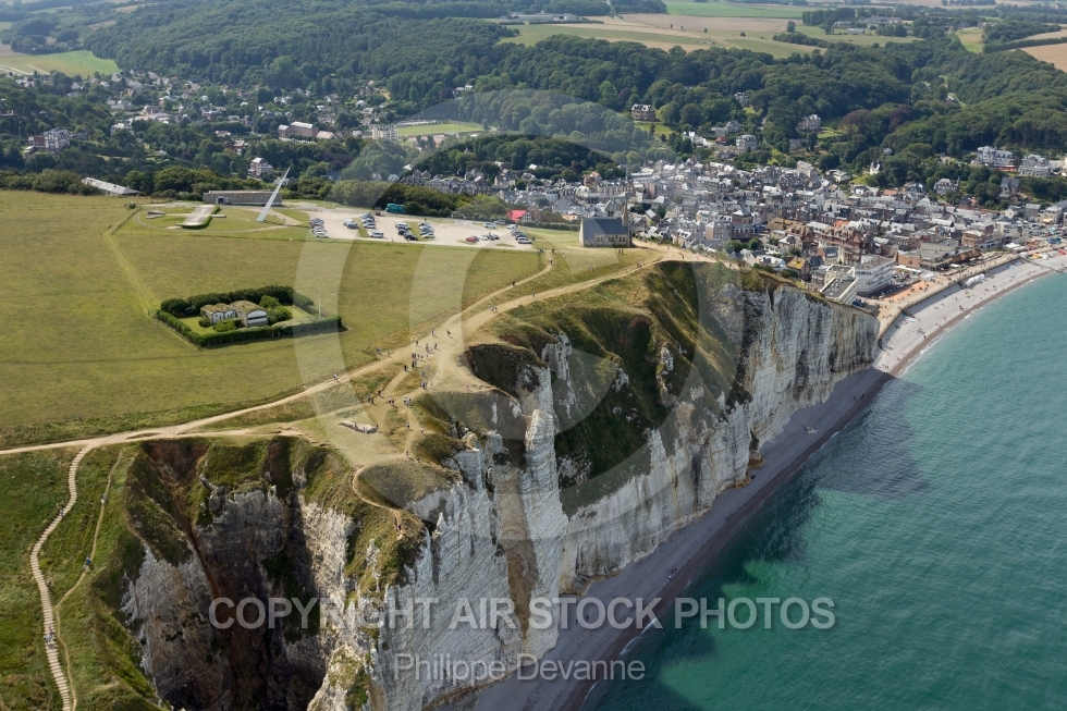 Description: Photos aérienne de la falaise d Amont d Etretat 76790 sur la côte d Albatre , département de Seine-Maritime, région Haute normandie, France - Aout 2015