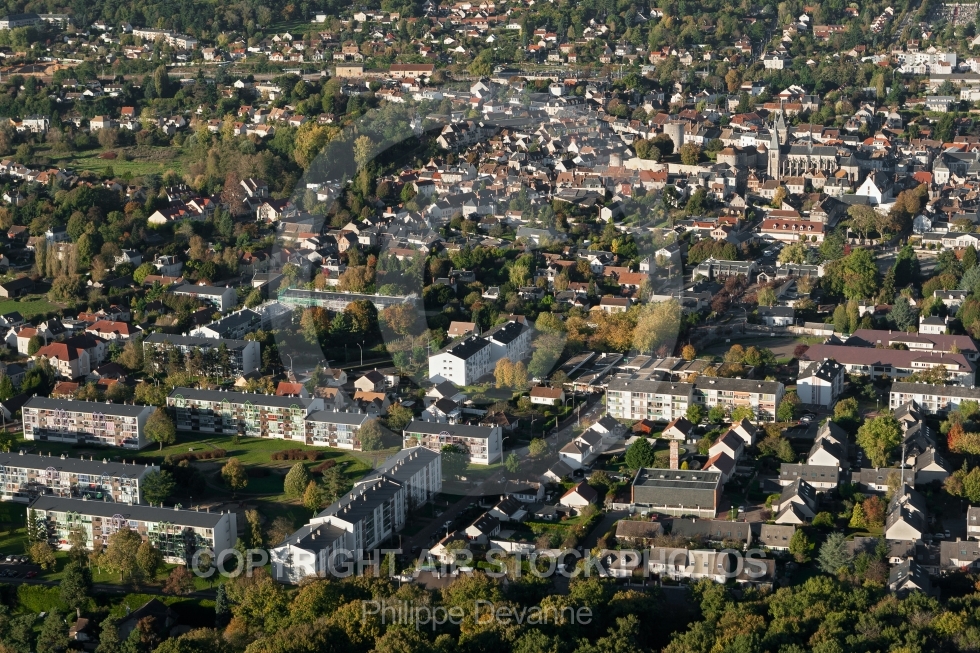 Photo aérienne de Dourdan 91410, vue du Sud-Ouest de Dourdan, Avenue d Olrleans département de l Essonne au coeur de l Hurepoix , Région Île de France, France - Date de prise de vue le 14 octobre 2014