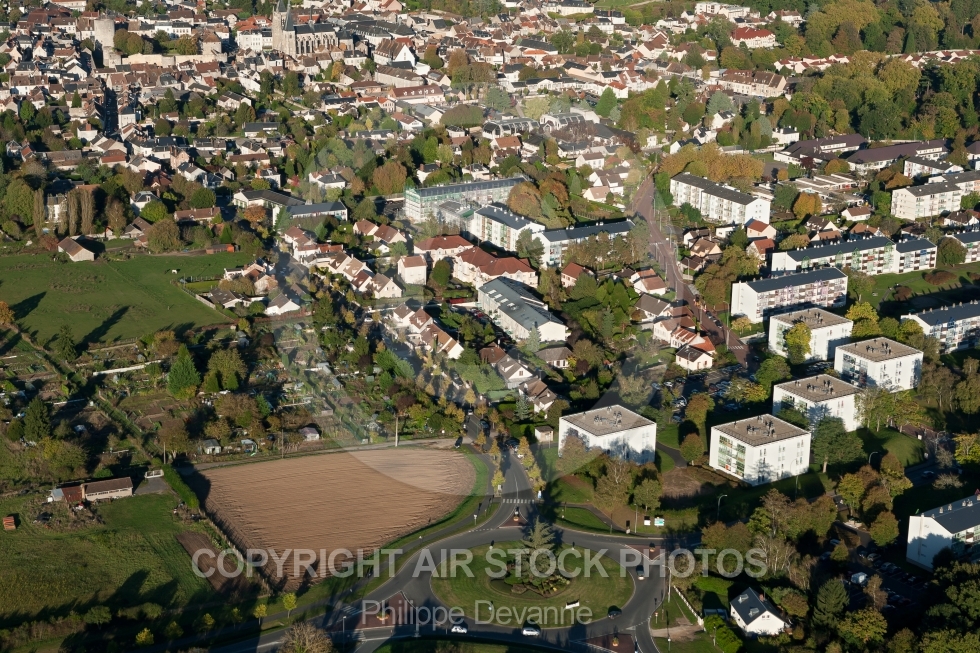 Description: Photo aérienne du sud - Ouest de Dourdan 91410, Rond point Avenue de Châteaudun et de la D116, département de l Essonne au coeur de l Hurepoix , Région Île de France, France - Date de prise de vue le 14 octobre 2014