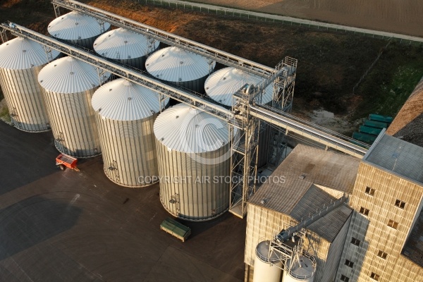 Description: Photo aérienne entreprise silos a grains sur la commune de Coulombs, 28210, département d Eure-et-Loire, France