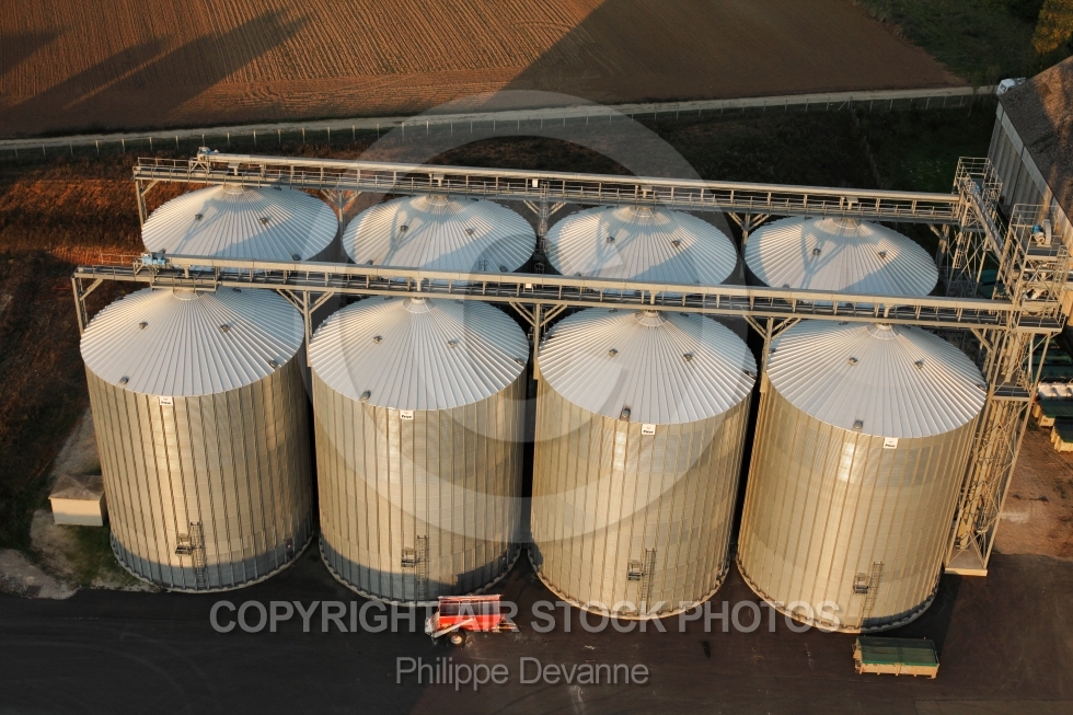 Photo aérienne entreprise silos a grains sur la commune de Coulombs, 28210, département d Eure-et-Loire, France