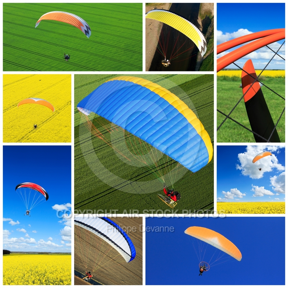 Description: Collage photos de paramoteus ou parapentes ULM motorisées