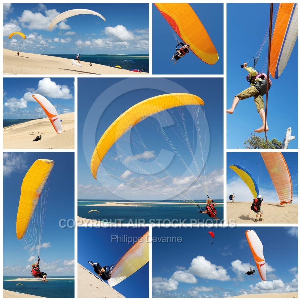 Description: collage parapente soaring a la Dune du Pyla, département de la Gironde 33