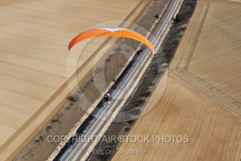 | Vol paramoteur au dessus du chemin de fer | Qualité : Fichier JPG Original Dimensions : 3888(px) x 2592(px) Megapixels : 10,08 Taille du fichier : 6,61(mb) Prix : €45 ( TTC, TVA incluse 20.0000% - TVA 20 )Prix: €45
