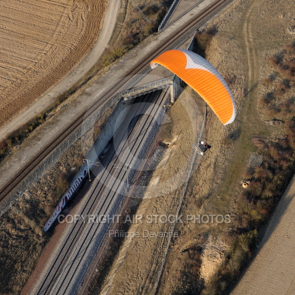 | Vol paramoteur au dessus du chemin de fer | Qualité : Fichier JPG Original Dimensions : 2592(px) x 2592(px) Megapixels : 6,72 Taille du fichier : 5,47(mb) Prix : €45 ( TTC, TVA incluse 20.0000% - TVA 20 )Prix: €45