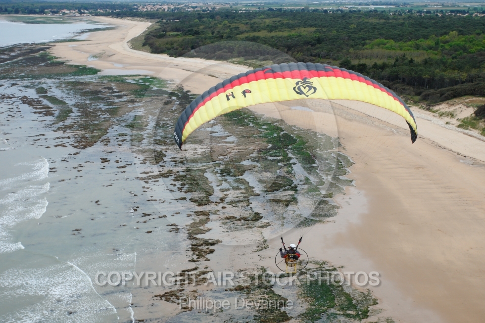 Photo aérienne d un paramoteur en bord de mer à Jard-sur-mer, Vendée 85, région Pays de la Loire, France, Europe